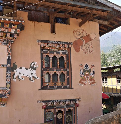 First stop was for a short walk across the fields to Chime Lakhang. The area is dedicated to Drupka Kunley (the 'Divine Madman') and the numerous phallic symbols are a tribute to his sexual reputation. |